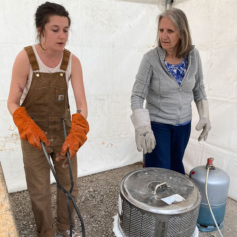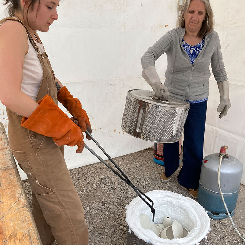 Sélectionner des pièces biscuitées (cuites une première fois) et les chauffer à 600 / 900°C (selon l’argile utilisée).