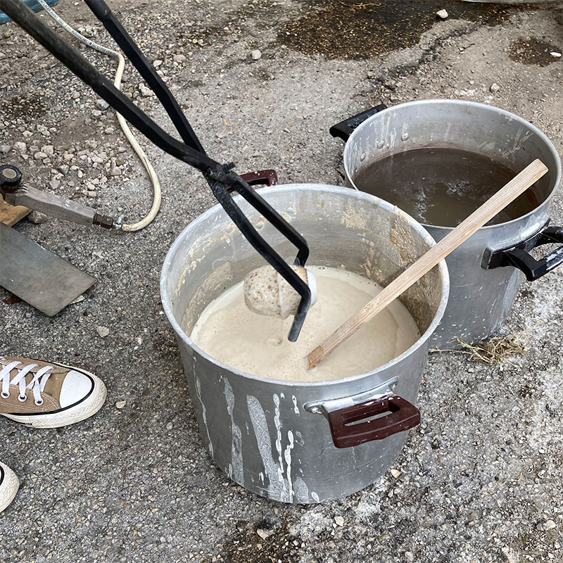 À l’occasion des journées européennes des métiers d’art, l’association le bocal a présenté, place des salines, une démonstration de cuisson céramique OBVARA.